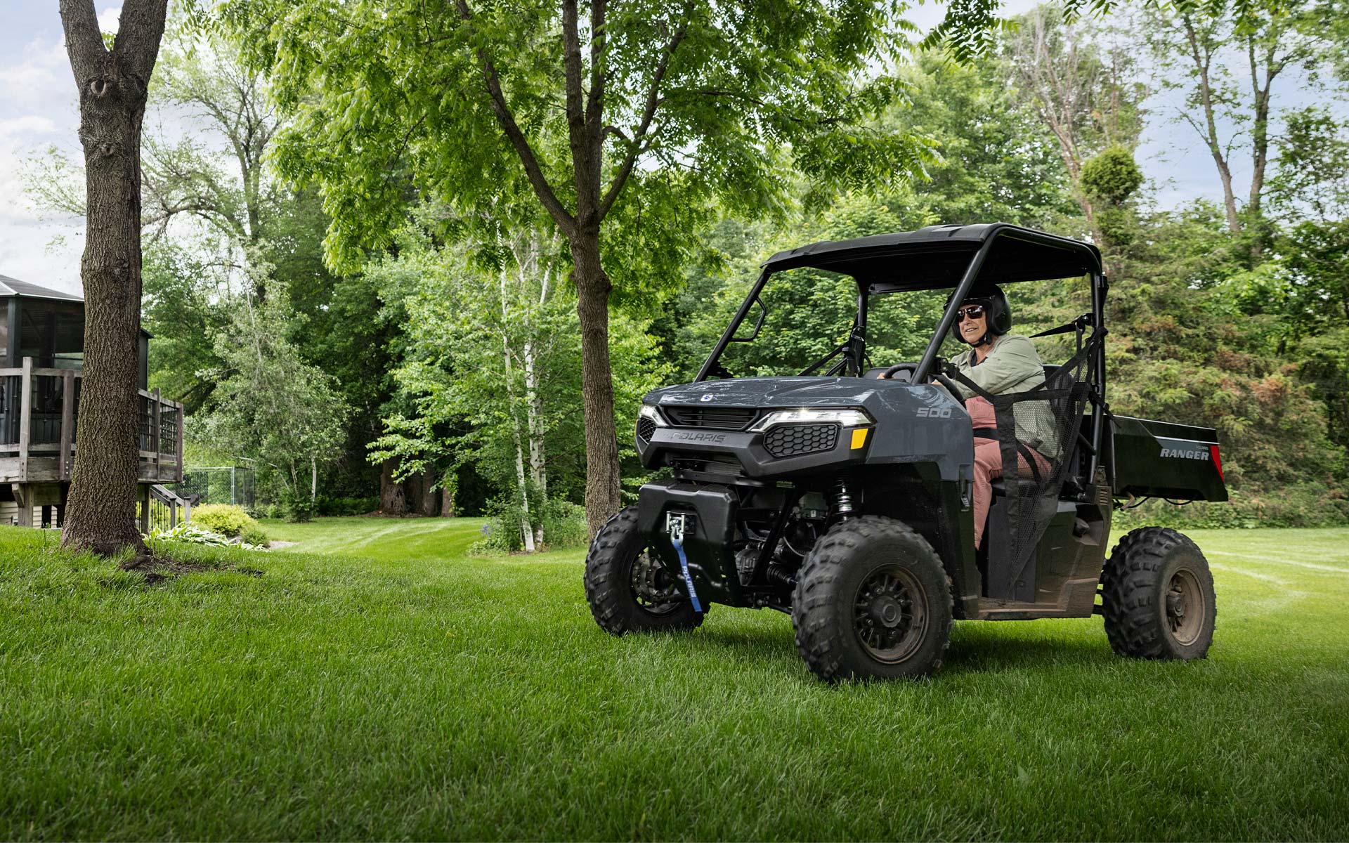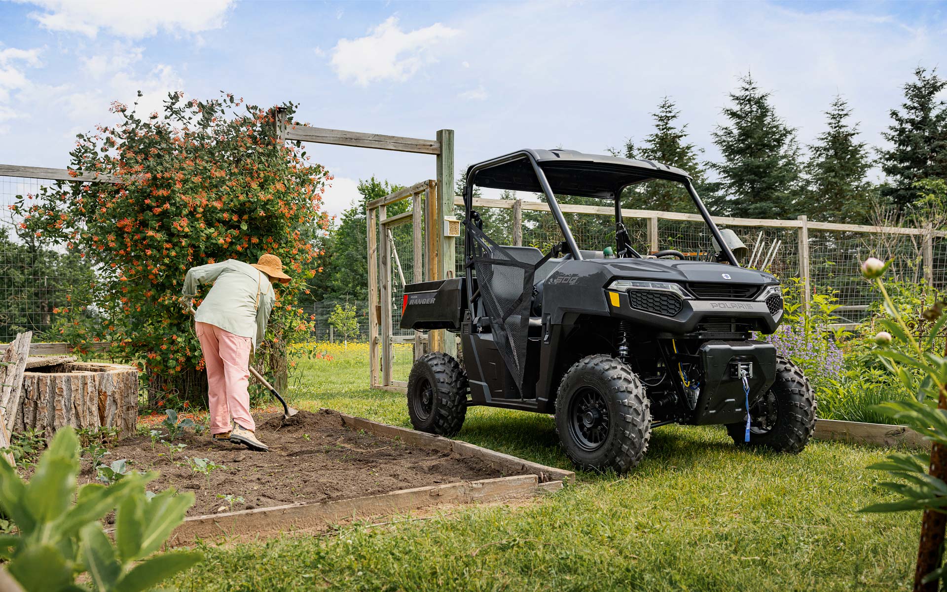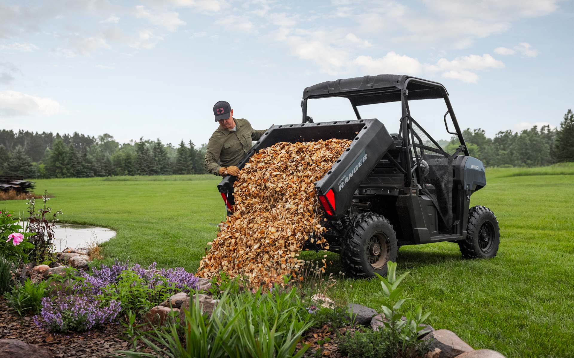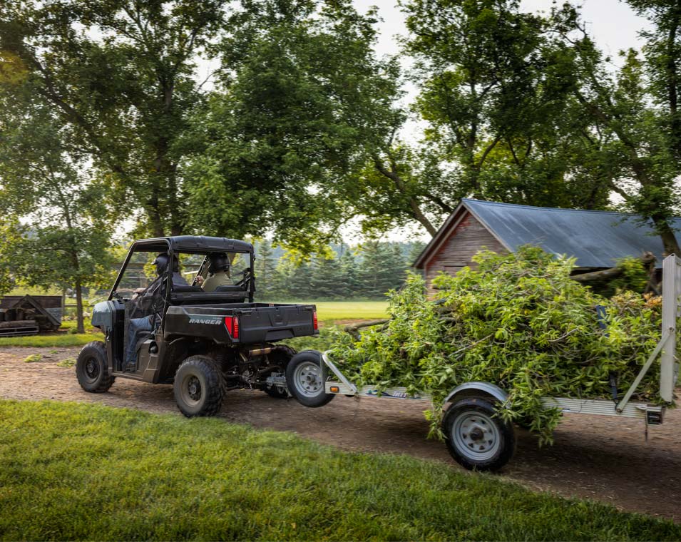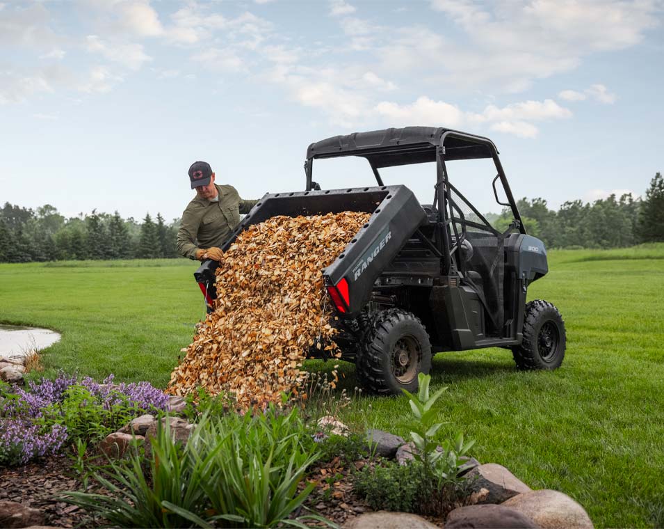 Ahorra tiempo y energía en las tareas del hogar gracias a la caja de descarga, la capacidad de remolque y el winch de fábrica del RANGER 500.