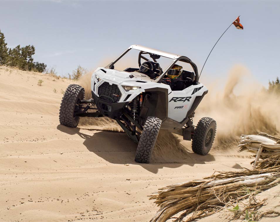Llega y destaca del resto con el nuevo y agresivo diseño de RZR Pro R, que ofrece más estilo y desempeño para ser el mejor todo.